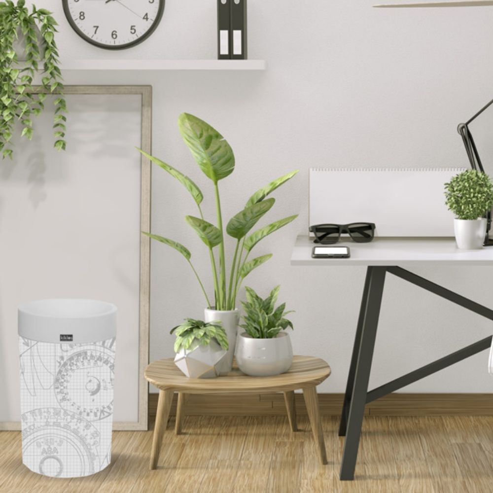 Plastic garbage bin IML 28lt Linen print and open top, ideal for bedrooms and office spaces.