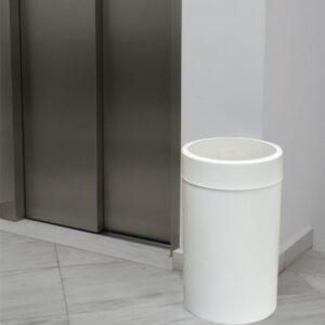 White garbage bin DECO SWING 28lt with swing lid in Lava or Petra color.